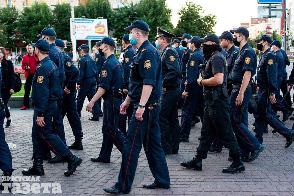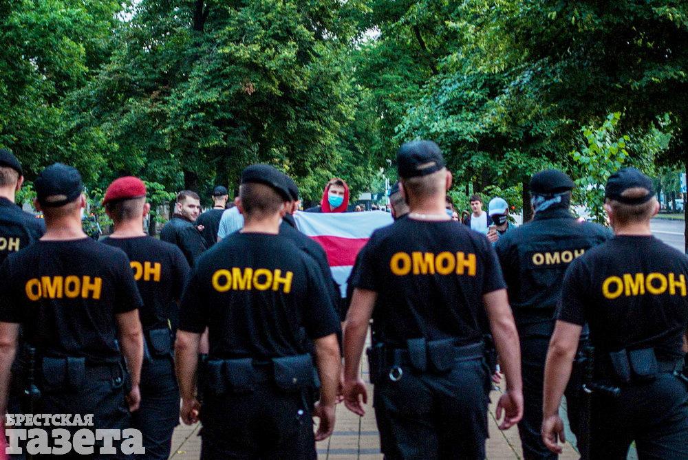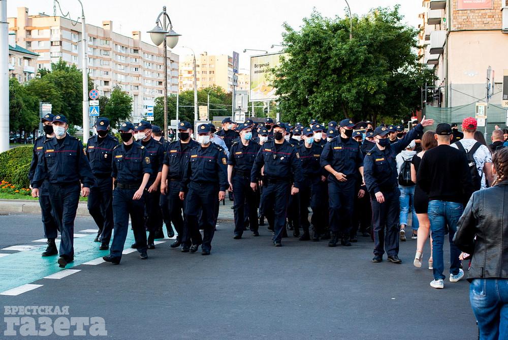 Из-за этого в разных городах Беларуси вечером начались массовые акции протеста. В Бресте люди тоже вышли на улицы. Изначально участников акции было немного. Гораздо больше было сотрудников милиции.