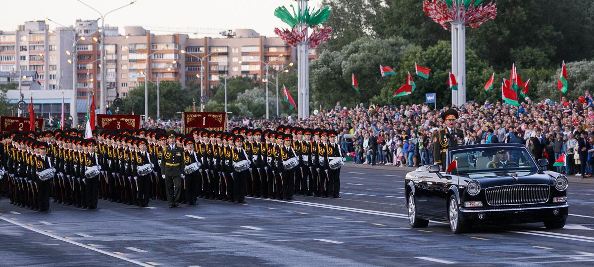 Все это зеркалит вторая столица — Минск, но если понимать замах российской стороны, то в беларуской версии можно увидеть много комичного. Не зря одна из самых популярных кличек Лукашенко — бульбафюрер, что само по себе указывает на несоответствие реальности уровню задуманного пафоса. Комичность Беларуси как страны «на подпевках» у российского фашистского режима в том, что имперскость, тяга к захвату чужих земель беларусам полностью чужда. Сам Лукашенко — человек советский, как он о себе и говорит. Ему бы заниматься родным госпланом да выезжать на лыжню с «товарищами по партии», а не вот это вот все. Ну и парадик, конечно. Под солнцем или под дождем, серые шерегни, «Смуглянка», солдатская каша. Все в пределах мирной, хотя и неосмысленной ностальгии.