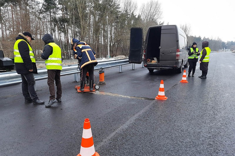После возбуждения дела, в сентябре 2020-го, девять кернов с дороги взяло уже следствие. Но почему-то их отправили сначала на испытания в киевскую организацию, а на судебные экспертизы — строительную и экономическую — керны попали только весной 2021 года. Причем проводила их частная компания ООО «Судебно-экспертное бюро Украины» с офисами в Киеве и Львове. Там эксперты отнесли смесь к типу В и определили ее рыночную стоимость (на этой оценке базировалась сумма ущерба).