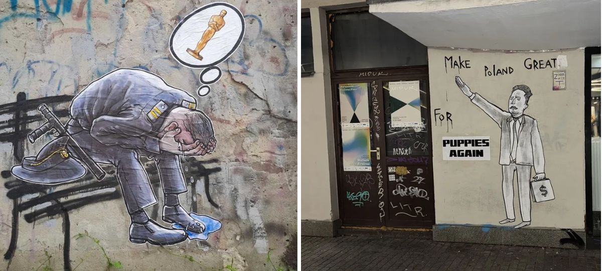 В конце января 2025 года художник создал арт, за который его задержала полиция. Прямо в центре Варшавы, через дорогу от Дворца культуры, он изобразил Илона Маска с поднятой рукой. Такой жест миллиардер показал на инаугурации Дональда Трампа.