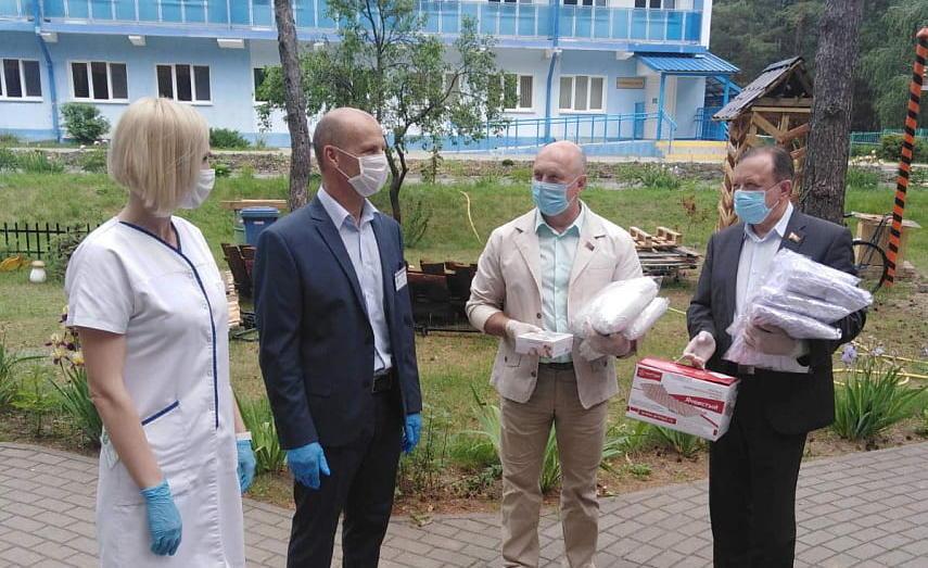 Вместе с Евгением Зайцевым Дашко вручил руководству Брестского психоневрологического дома-интерната для пожилых и инвалидов бесконтактный термометр, 1 000 защитных масок и противопролежневый матрас, также приобретенные за собственные средства депутатов.