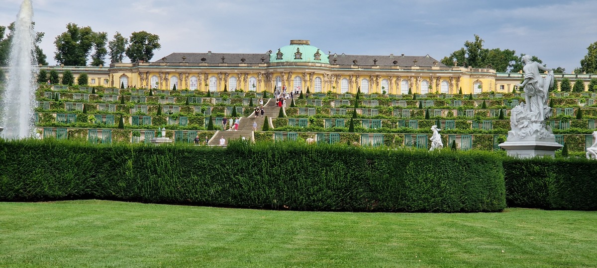 Дворец Сан-Суси служил Фридриху Великому (Friedrich II) убежищем от повседневной суеты и придворных. «Sans souci» в переводе с французского буквально и означает «без забот». Прусский король распорядился начать строительство этой летней резиденции в 1745 году. Он здесь не только жил, но и умер.