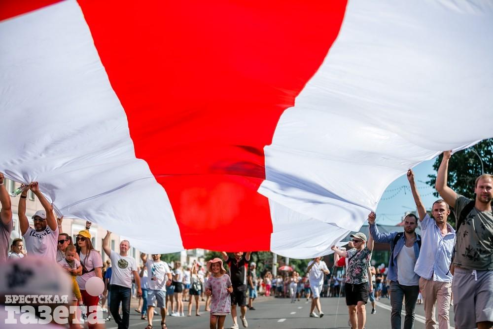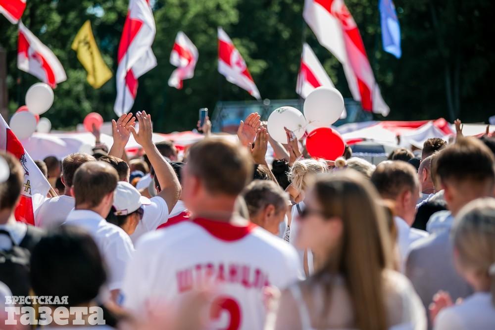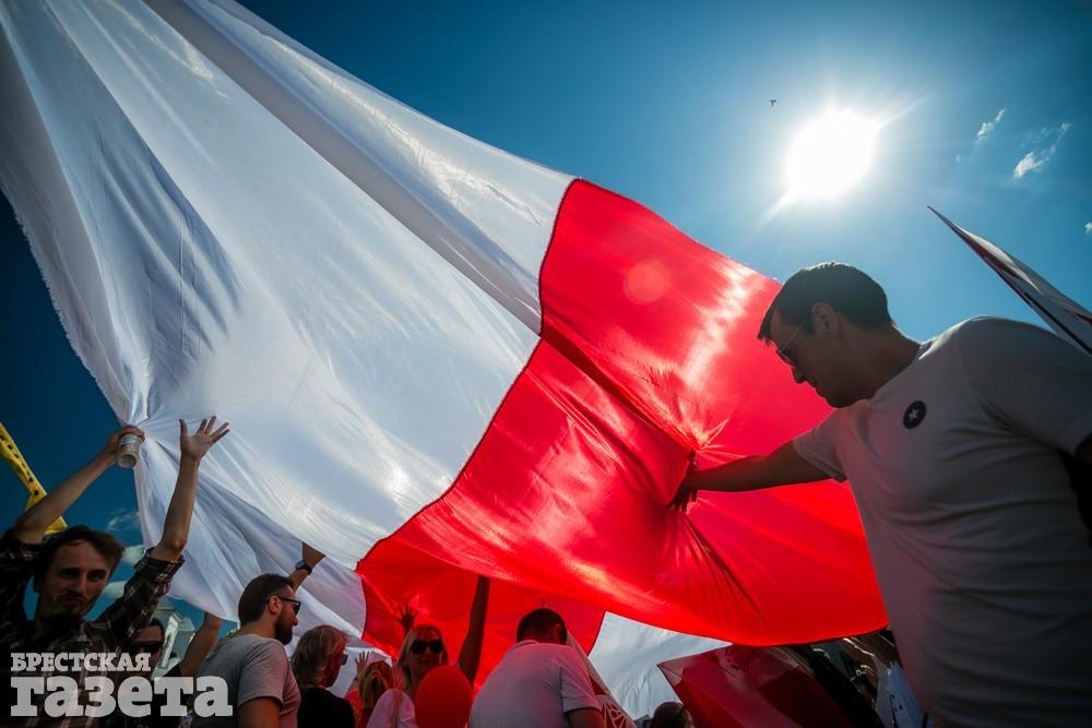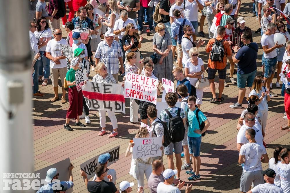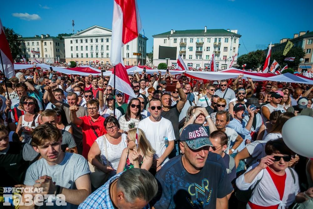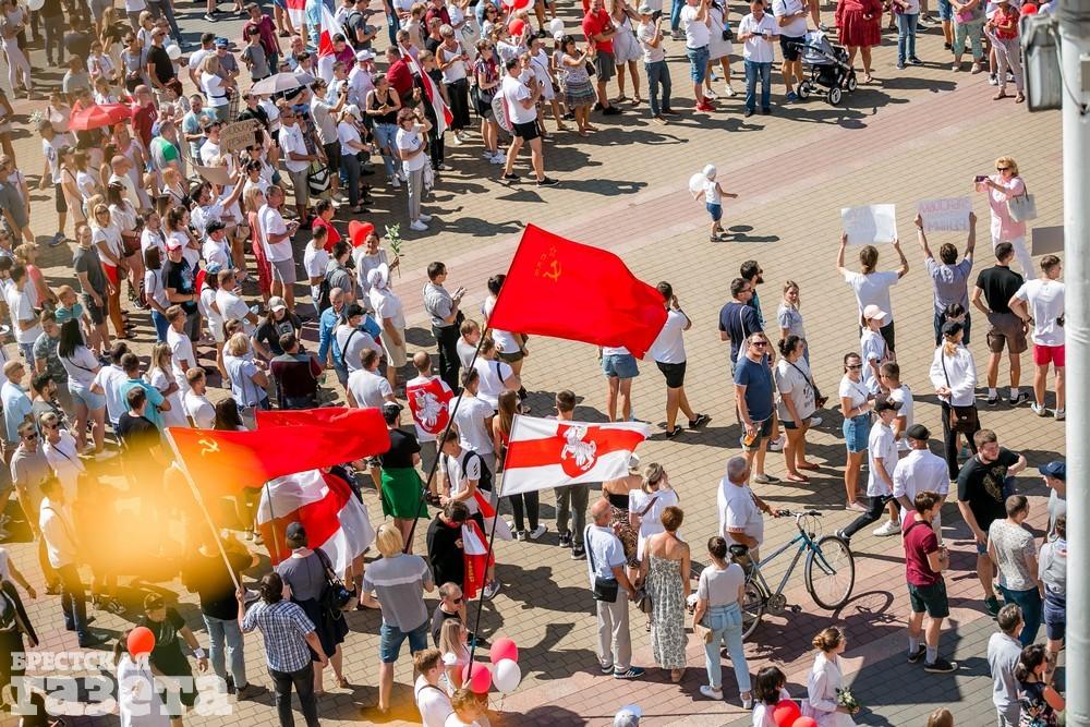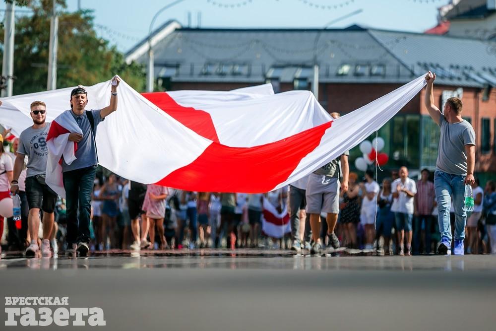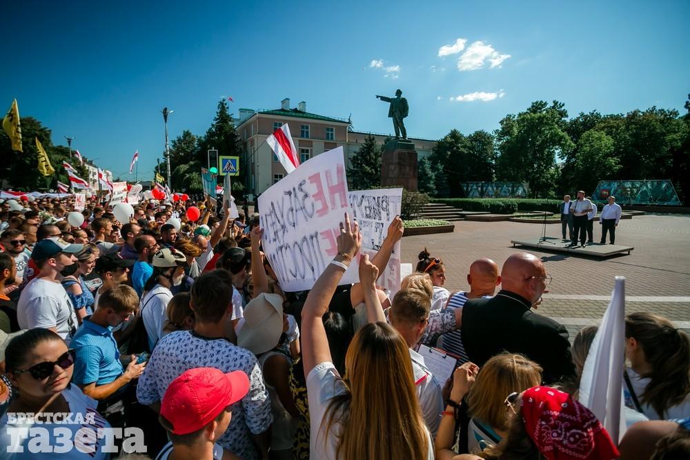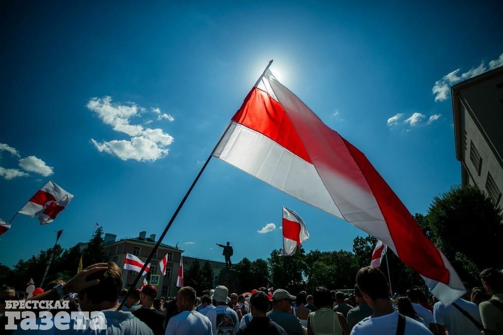 Бело-красно-белые флаги, надежда на лицах горожан, протестные плакаты... Смотрите, что было на площади Ленина в Бресте в прошедшее воскресенье.