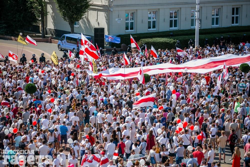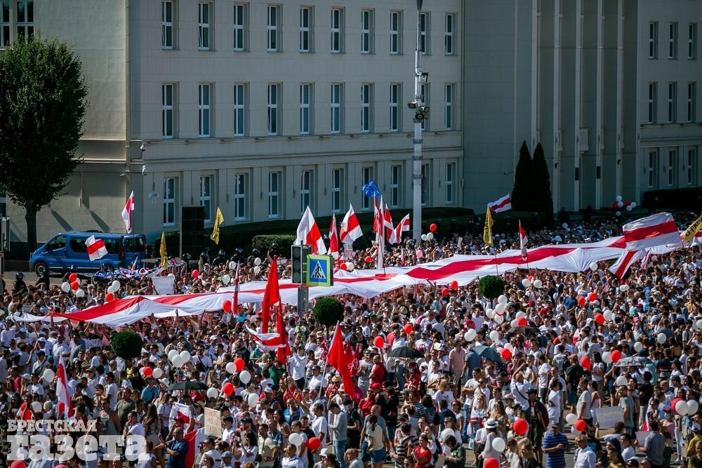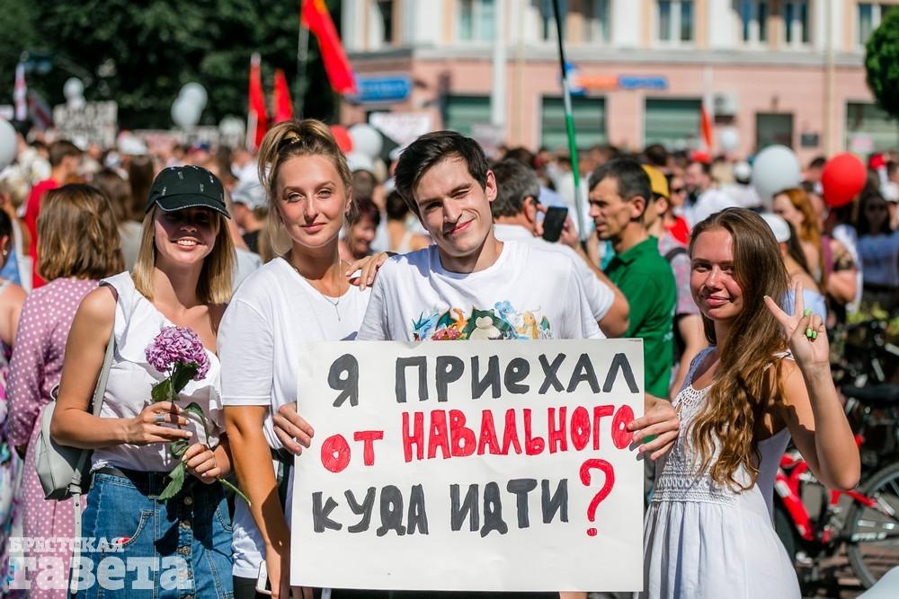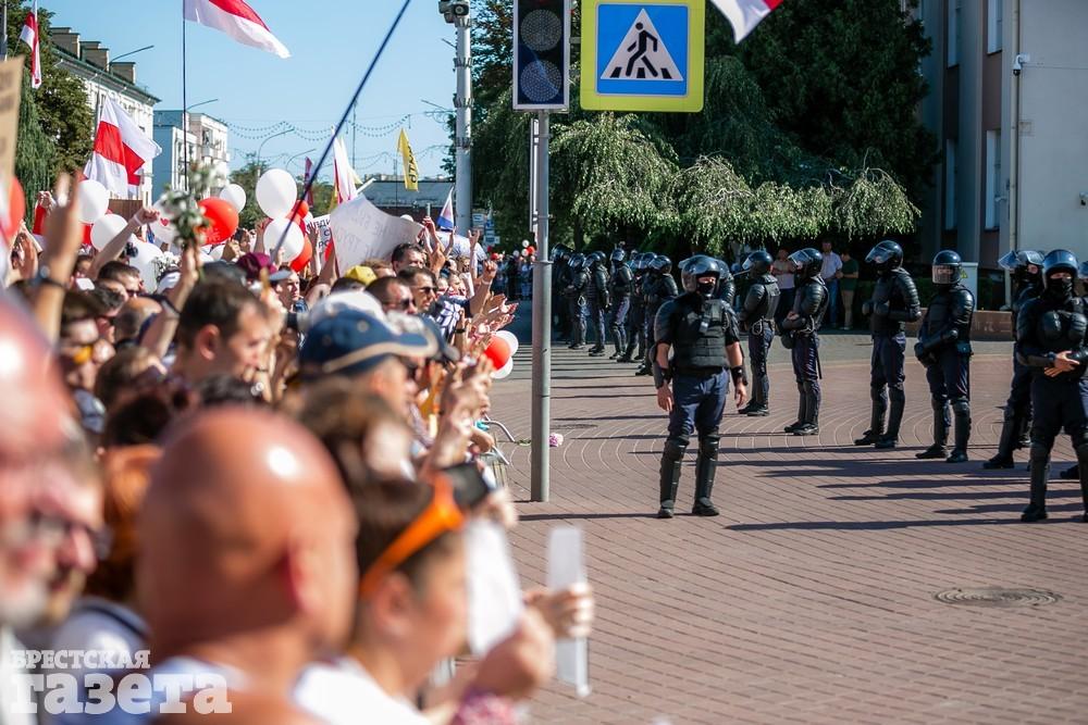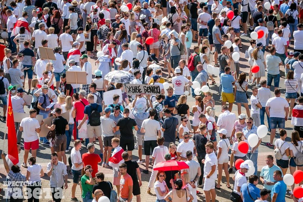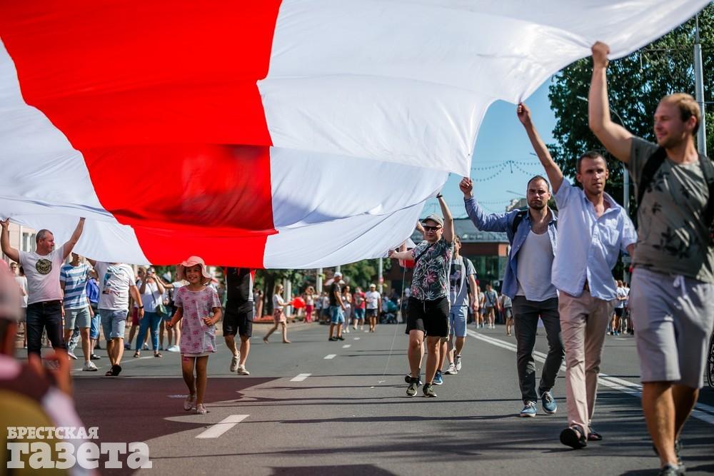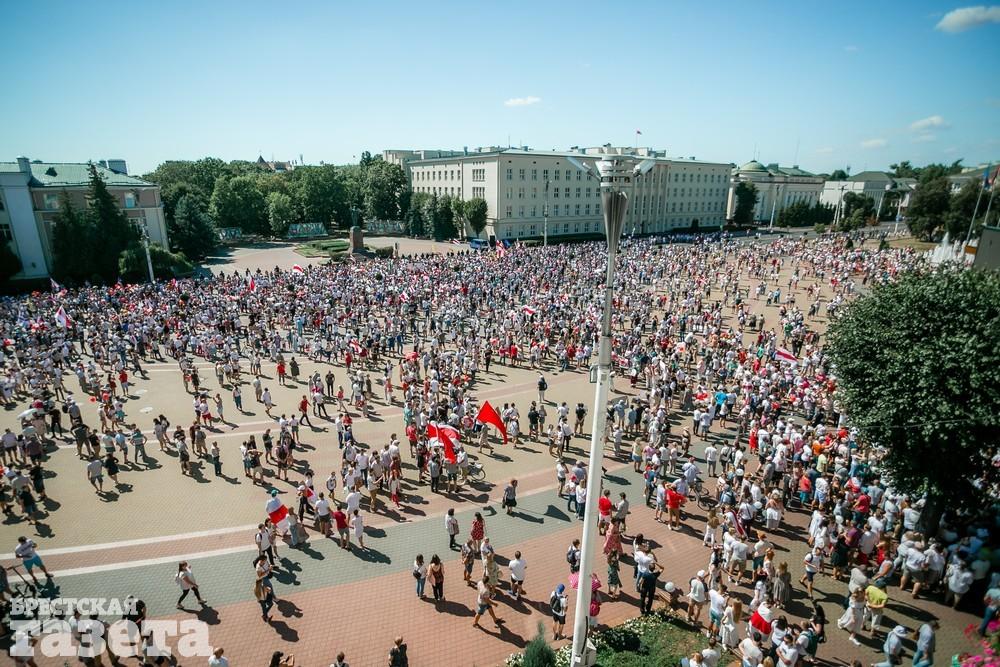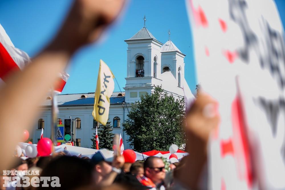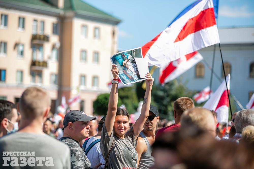 Бело-красно-белые флаги, надежда на лицах горожан, протестные плакаты... Смотрите, что было на площади Ленина в Бресте в прошедшее воскресенье.