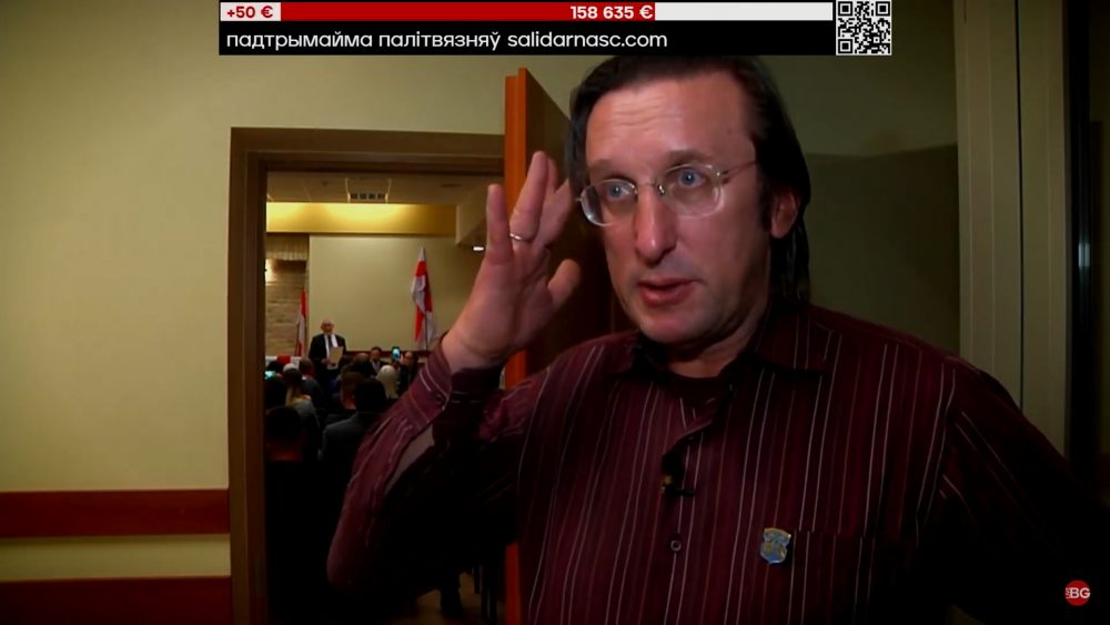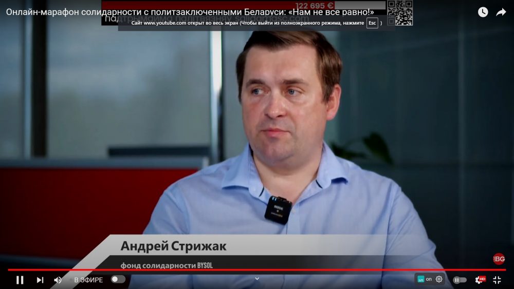 Далее в эфире марафона появился руководителя НАУ Павел Латушко. Он пришел с лотами, деньги с которых пойдут на поддержку политзаключенных. Например, футболисты «Динамо-Киев» подарили Павлу Латушко футбольный мяч со своими автографами. Более подробно о лотах НАУ можно узнать здесь. А представители НАУ персонально перечисляют 1 500 евро на поддержку политзаключенных в рамках онлайн-марафона.