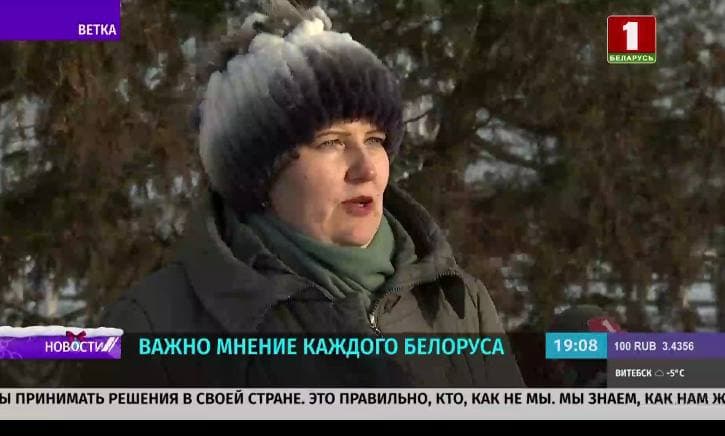 Также в сюжете говорит женщина из Ветки. Она высказывается коротко: «Строится наше будущее — наше и наших детей. Делается же это все для народа. Мы должны выбирать свое будущее».