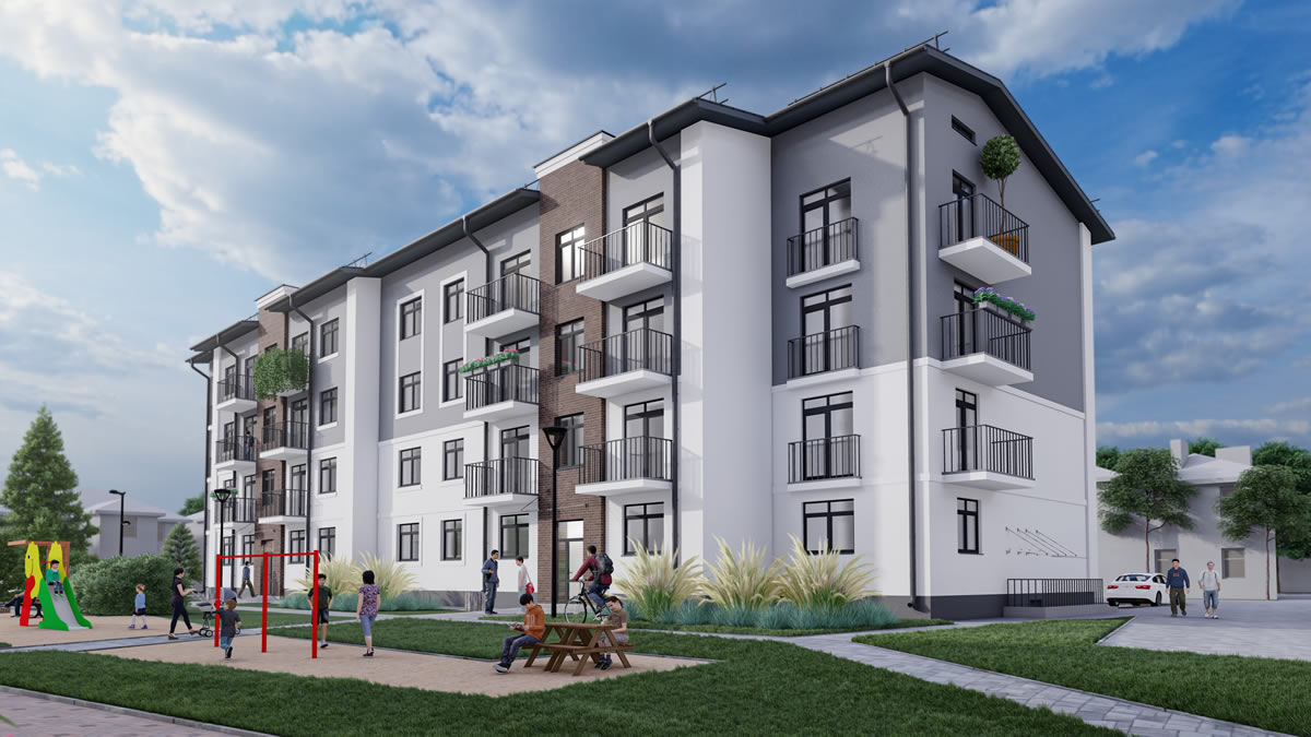 Первый дом построят по адресу ул. Советских пограничников, 8. Это будет трехэтажный дом, с торговыми помещениями на первом этаже. На втором и третьем — по две четырехкомнатные квартиры.