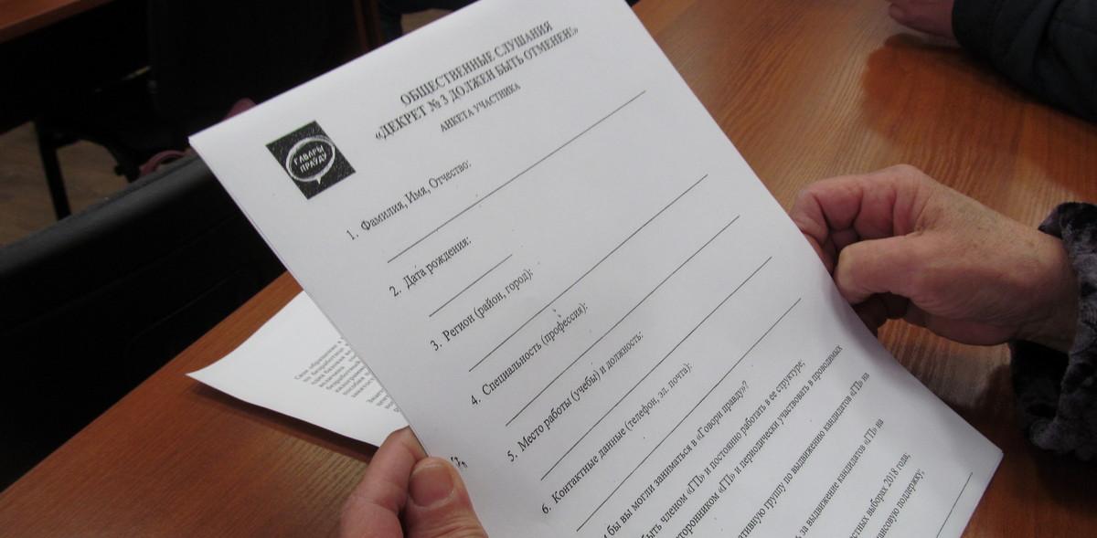 «Если мы считаемся юридически безграмотными, так давайте вы создадите какой-то юридический комитет, на основании которого мы сможем юридически правильно обращаться к кому угодно по декрету №3, по дорожному налогу, по декретным, которые не выплачиваются, потому что «предприятие в долгах» и так далее», — высказался брестчанин Юрий.