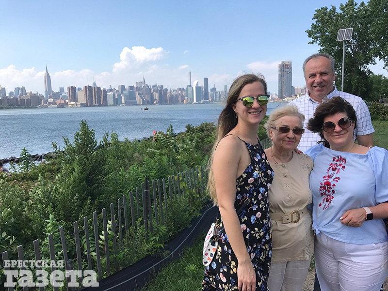Михаил с тещей Зоей Ивановной, женой Еленой и дочкой Алиной на фоне Манхэттена. Фото из личного архива героя