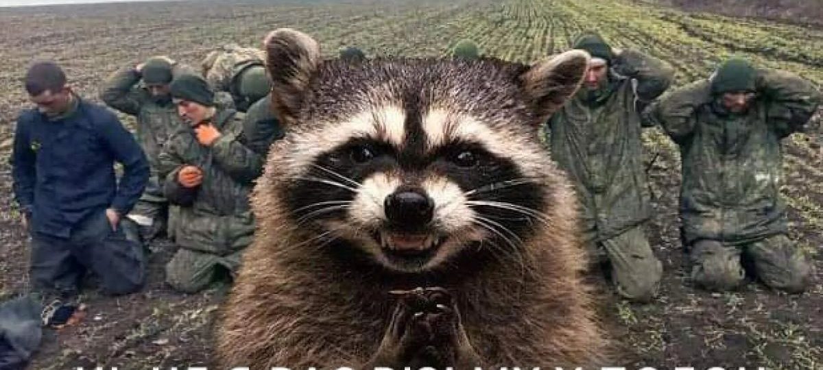 Главным героем мемов стал «покраденный» в Херсоне енот. 11 ноября журналистка и сторонница войны в Украине Анна Долгарева в своем телеграм-канале сообщила о том, что ее товарищ украл енота из зоопарка в Херсоне. Как-никак, единственный ощутимый успех во время героической перегруппировки на левый берег Днепра.