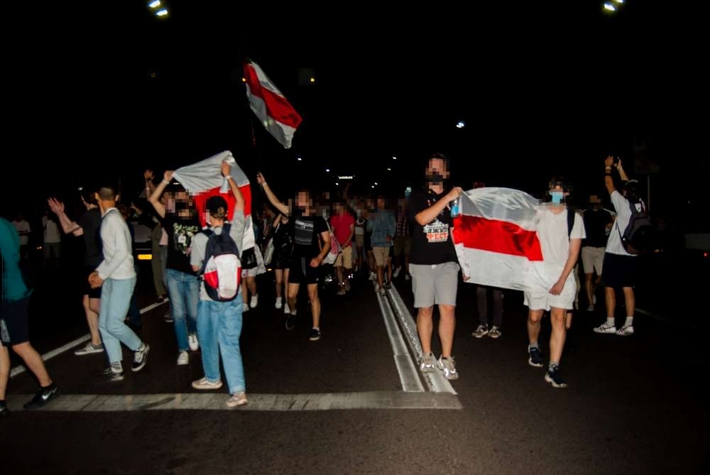 Около 20.30 на Советской собралась колонна людей, которая шла с бело-красно-белыми флагами в направлении проспекта Машерова. По пути к ней присоединялись новые участники. Протестующие скандировали «Жыве Беларусь!», «Любім, можам, пераможам!».