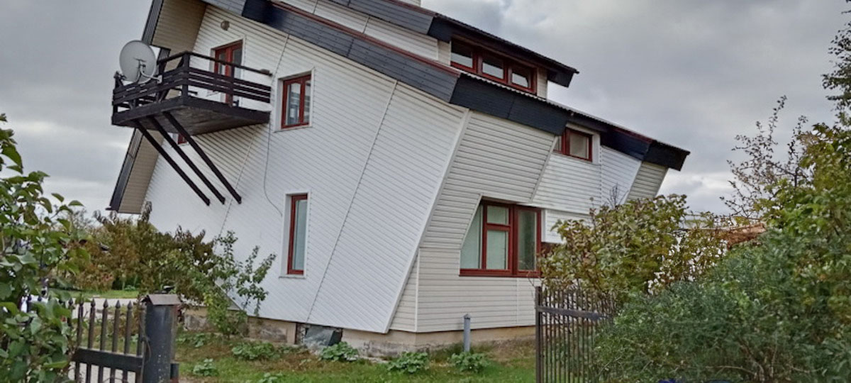 Вам тоже стало интересно, о чем думал создатель этого, как пишут в объявлении, «футуристического» творения? Двухэтажный дом с полуподвалом 2005 года постройки находится в агрогородке Кобринского района. Как пишут авторы, «экстерьер здания бросает вызов традиционным представлениям о загородном жилье, воплощая современные идеи футуристической архитектуры». С этим не поспоришь.