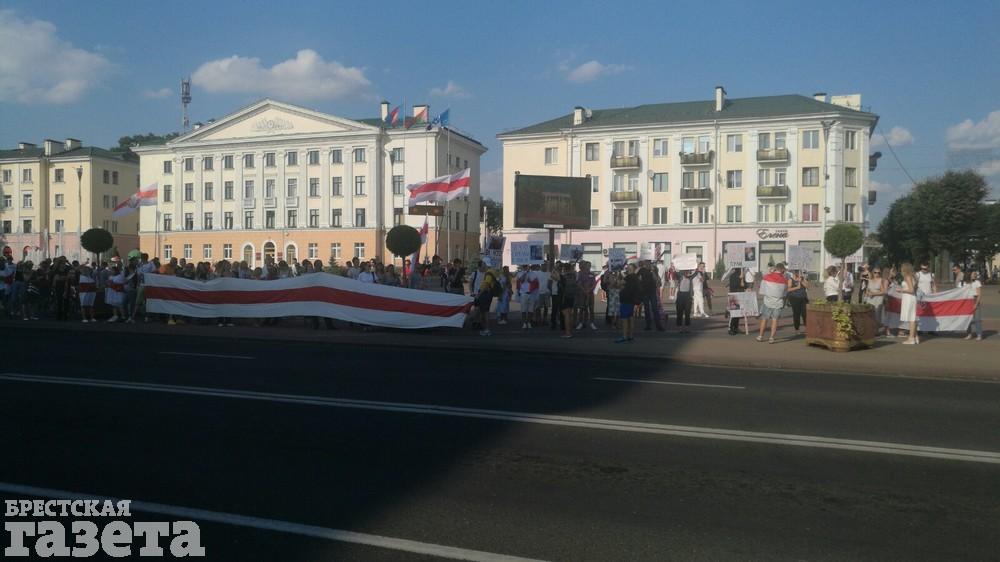 Около 17.30 протестующие вышли на площадь Ленина в Бресте.