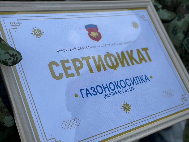 А вот председатель Брестского облисполкома Юлий Шулейко подарил погранзаставе сертификат на бензиновую газонокосилку ALPINA AL5 51 SQ. Облисполком купил ее через сайт госзакупок за три дня до визита Юрия Шулейко на погранзаставу. Поставили ее максимально быстро, а стоила газонокосилка 1 800 рублей. Естественно, деньги на нее выделили из бюджета.