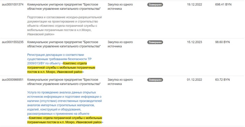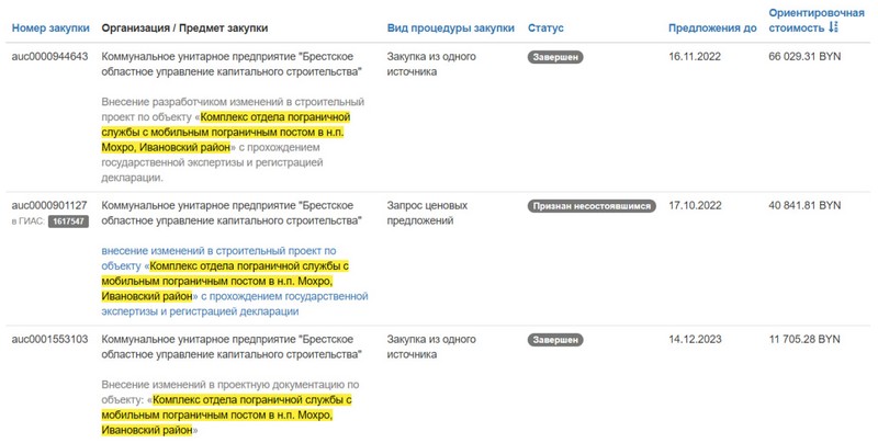 Ранее в Госпогранкомитете Беларуси и госСМИ не упоминали и не рассказывали о ходе строительства комплекса погранзаставы «Мохро». Но мы нашли сведения о ней в официальных документах и на сайте госзакупок.
