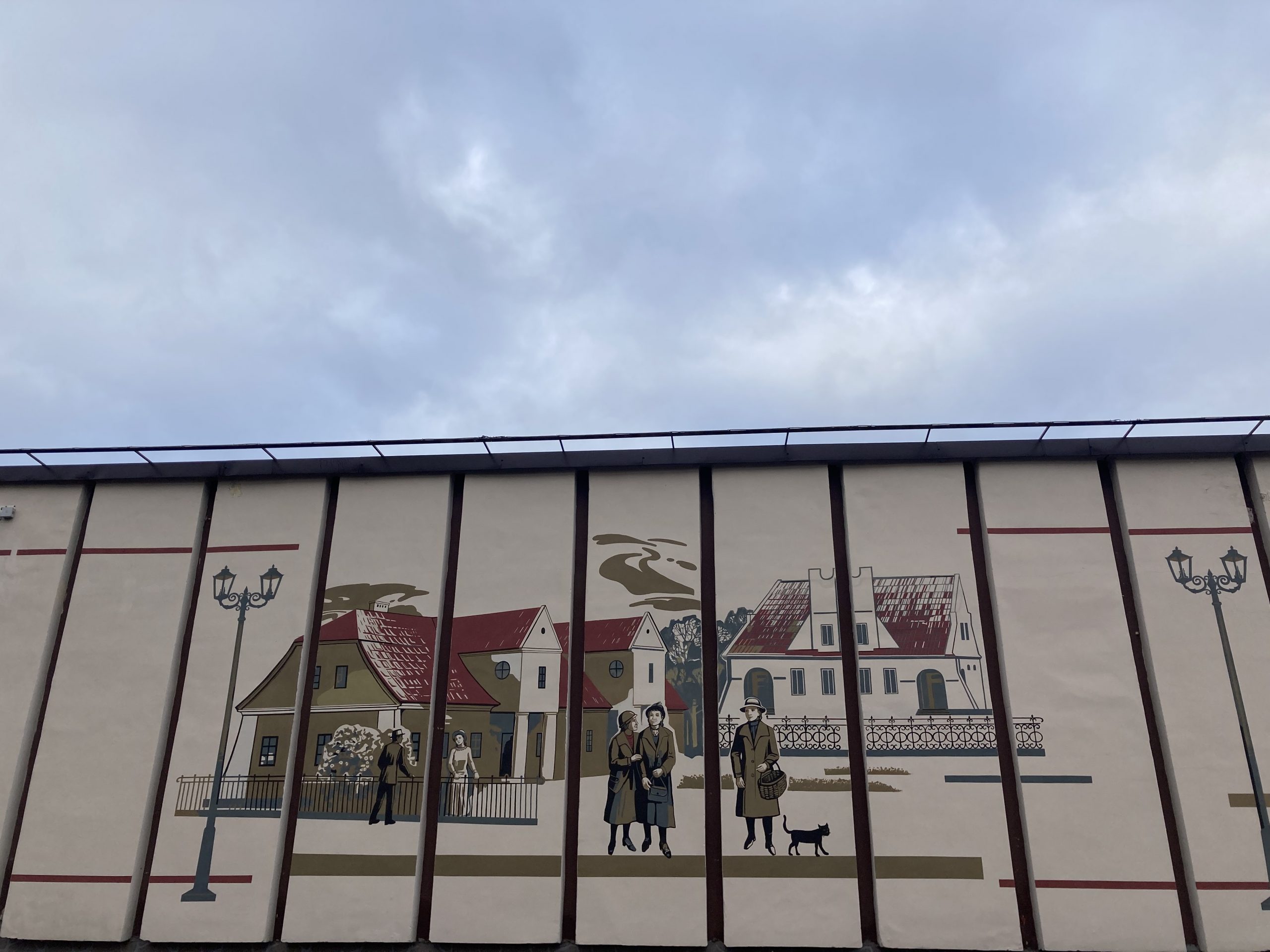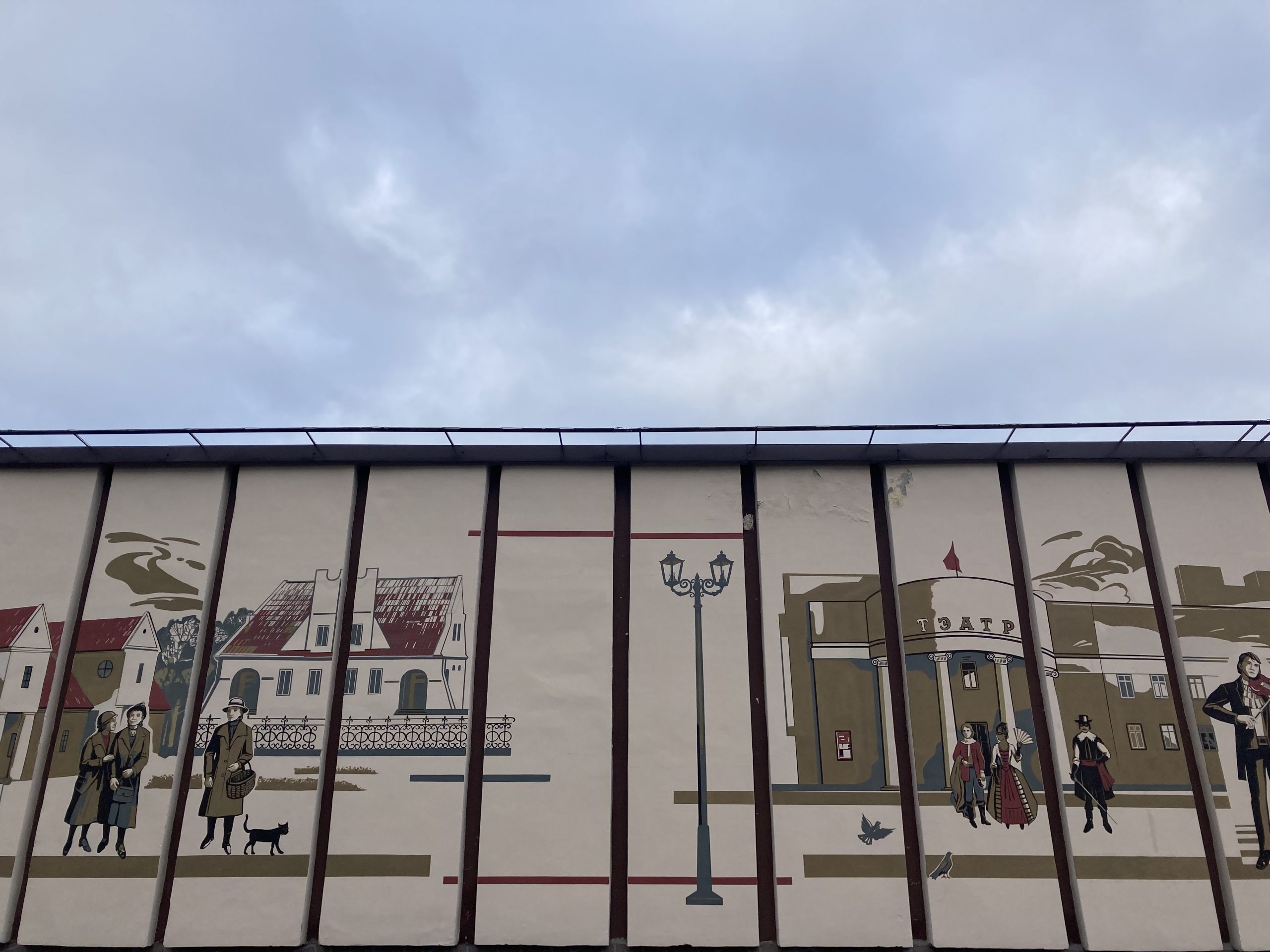На стене у завода “Белалко” на улице Мицкевича можно увидеть роспись, которая отсылает своими сюжетами к истории города. Туристам этот мурал Николая Гурщенкова точно понравится: на нем изображены главные символы Бреста: фонарщик, железнодорожный вокзал, городской парк и т.д.