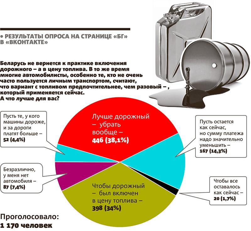 Вопрос о том, как справедливее взимать с владельцев авто средства за пользование дорогами, также поднимался. В частности, недавно глава «Минскоблдорстроя» Денис Степанов отмечал, что именно схема с закладыванием суммы налога в стоимость топлива более оправданна, передает tut.by. «Чем больше человек ездит, тем больше он и платит. А тот автовладелец, который использует автомобиль реже, экономит свои деньги», — аргументировал он.