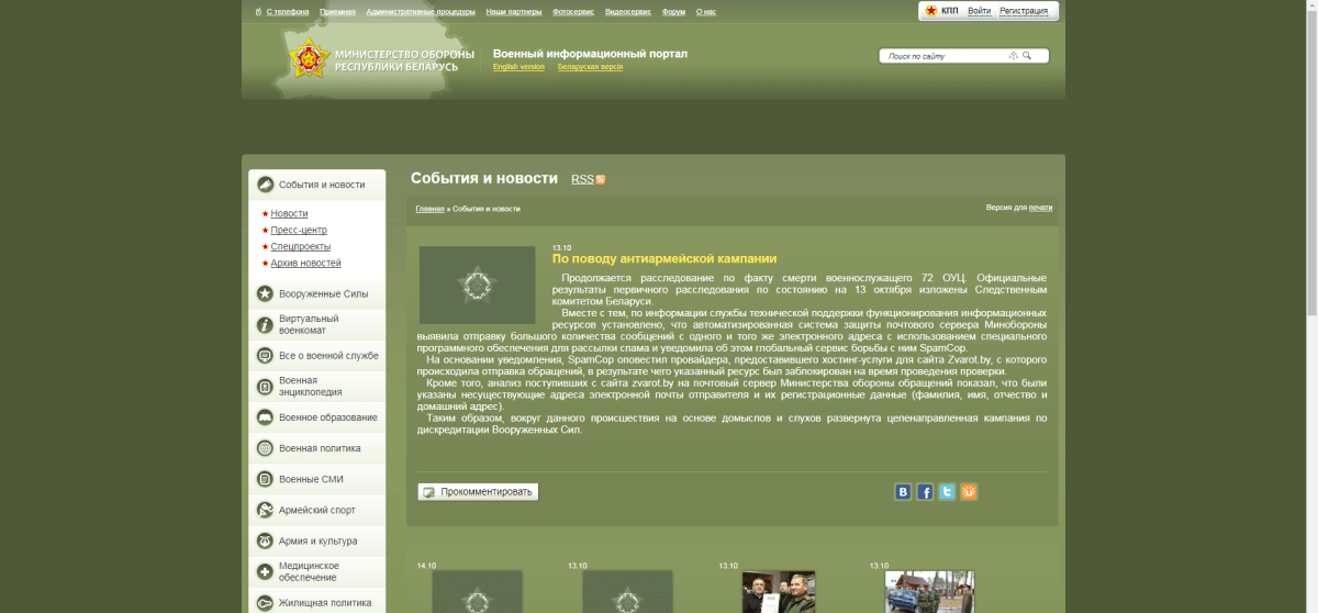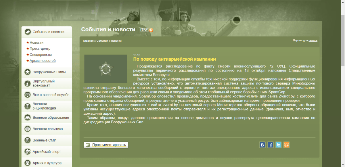 «Пока Zvarot.by лежит уже почти сутки, на помощь кампании пришли ребята из Удобный город. Petitions.by». Такое не забывается — весь интернет они не заддосят», — написал на своей странице в Фейсбук один из соавторов обращения в Минобороны Андрей Стрижак.