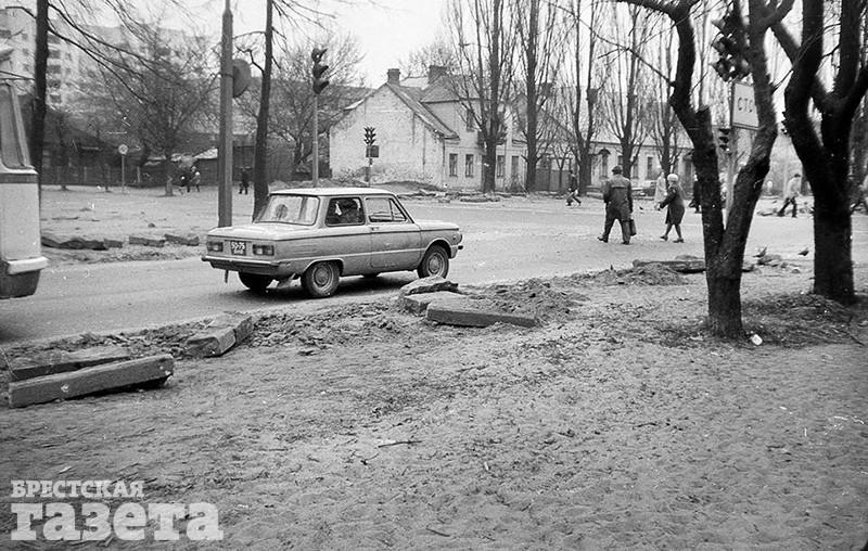 С внуком Женей — коренным брестчанином Евгением Бганцевым — мы встречаемся на углу бульвара Космонавтов и Пушкинской. Земля здесь разъезжена техникой, лежит одна большая плита. Вот на этом месте и был каштан, говорит Евгений: