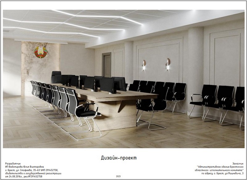 Параллельно с заключением Брестского областного УКС появился и дизайн-проект обновленного здания КГК. Документ содержит 35 страниц, в нем много визуализаций кабинетов и помещений здания после ремонта. Показываем самые интересные из них.