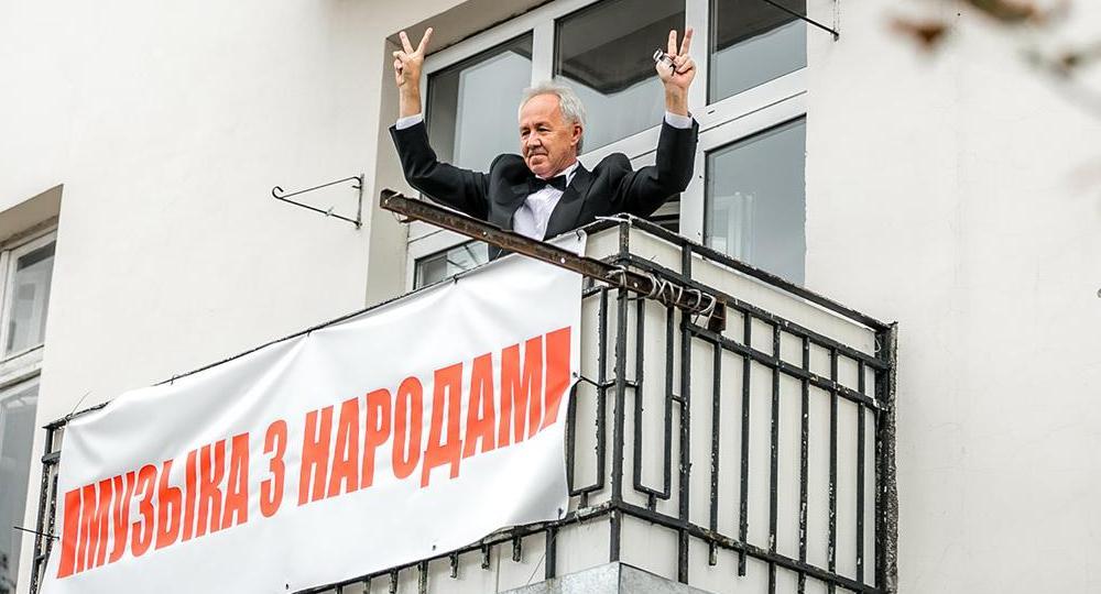 Когда мы созвонились с Александром по видеосвязи, первым делом музыкант показал нам свое электронное фортепиано, на котором еще летом исполнял «Священную войну», романсы, «Перемен», «Разбуры турмы муры». Помните? В первые дни протестов брестчанин открыл балкон своей квартиры на Советской и играл. Потом Ивачёва задержали, провели разъяснительную беседу. Но он от своего не отступился и даже вывесил на балконе плакат «Музыка з народам».