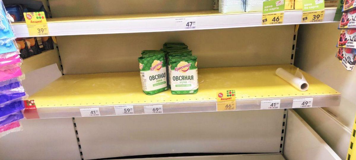 Пустые полки в магазине «Мега»