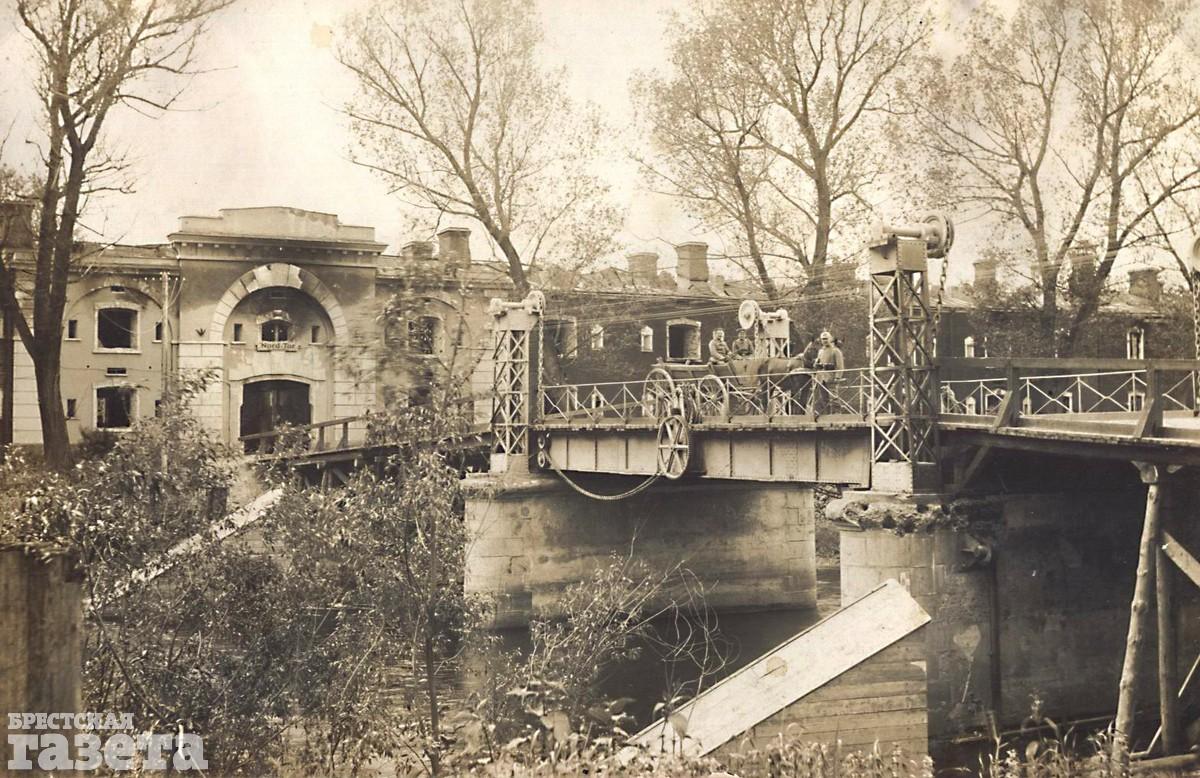 Сгоревший Бригитский мост, соединявший цитадель с Кобринским укреплением. 1915 год.