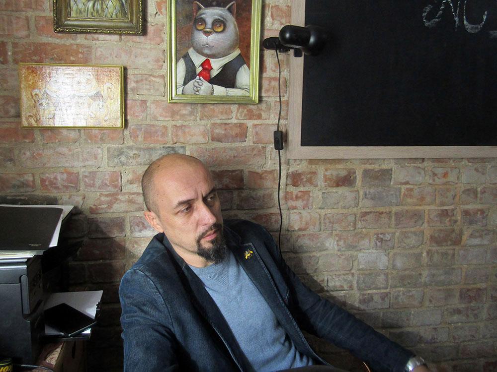 Сейчас кроме ArtCatShop есть еще и ArtCatShool – новое направление с той же аббревиатурой. «Вот в этом помещении проводятся занятия. С разными категориями людей. Сейчас стало модно заниматься искусством. У нас здесь свое представление – не в том плане, что мы по-другому смотрим на искусство; мы смотрим по-другому на его продвижение. В старом привычном порядке это было так: нарисовал художник картинку, вынес на выставку, получил какие-то отзывы, если повезло, даже в газету или на телевидение попал. А сейчас все, что попало в интернет, – это новая культура.