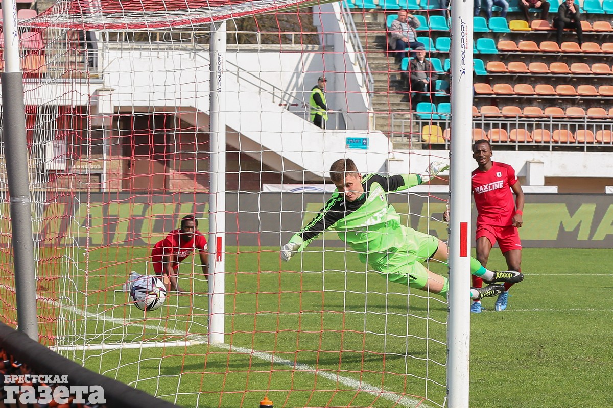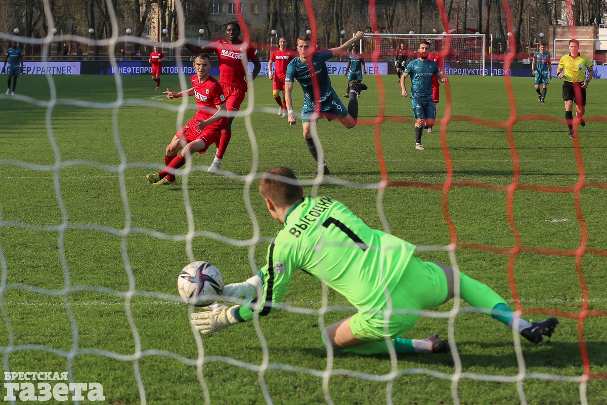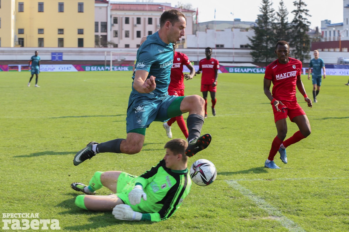 Брестчане открыли счет уже на первой минуте, забив один из самых быстрых голов этого чемпионата. Денис Лаптев ворвался в штрафную и пробил в голкипера, но спустя несколько секунд в доигровке эпизода головой переправил мяч в сетку.